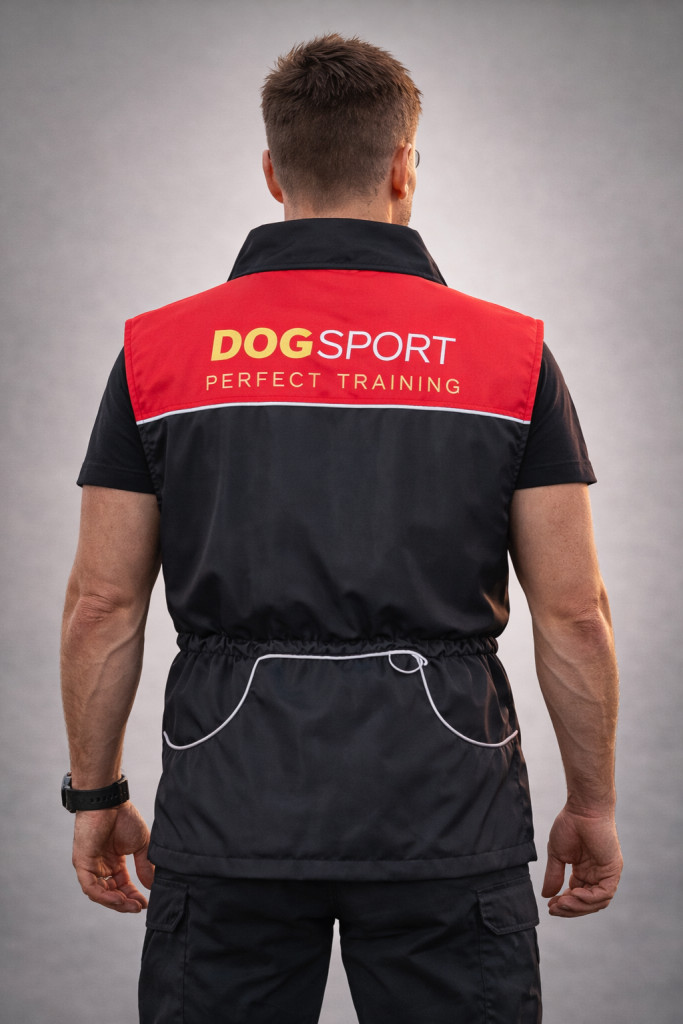 A fekete–piros design modern és sportos, amely ideális kutyakiképzők és sportkutyások számára.